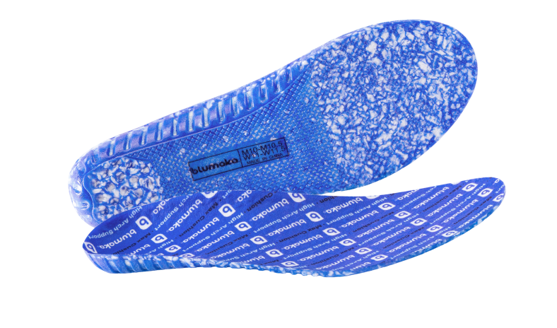 Crafted from up to 85% recycled performance foam, our manufacturing uses 99% less water and generates 65% fewer carbon emissions compared to traditional EVA insoles. With Blumaka, you're championing sustainability every step of the way so future generations can keep chasing greatness.